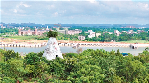 人事有代谢,往来成古今;江山留胜迹,重光当有时。如今,小岛的沉寂,已被平陆运河建设的隆隆机声打破。伫立文笔峰顶俯瞰,山脚下,正是繁忙的工地,平陆运河钦州城区段日渐成型。在不久的将来,这座绿树葱茏的小岛,岛上峭拔的小山,和山上标志性的白色尖塔,将成为运河畔一道美丽风景。(梁菡 庾琳 覃鸿图 陆敏 文/图)