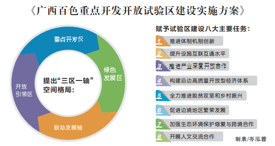 “百色试验区可以说是其他7个试验区的升级版,这也意味着百色试验区肩负的使命比其他7个试验区更加艰巨繁重。特别是百色试验区是在全球新冠肺炎疫情愈演愈烈以及全球经济发生复杂深刻变化的大背景下批准设立和建设的,更加彰显了该试验区建设的特殊重要意义。”张家寿表示。