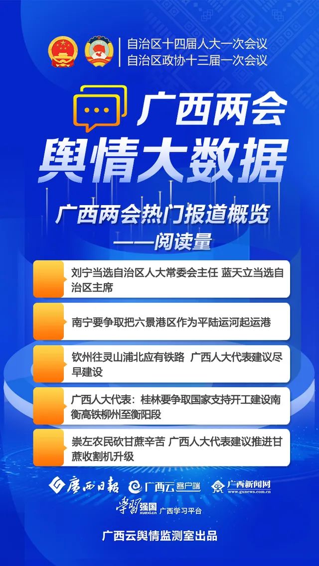 (1)广西两会期间,阅读量较高的报道概览如下: