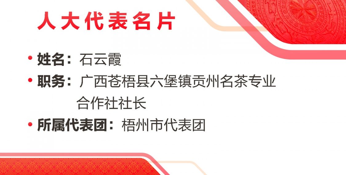 石云霞:我认真聆听并学习了政府工作报告,认为报告对过去一年做了全面的回顾与总结,对今年的工作指明了目标与方向。梧州六堡茶已经列入全国农业品牌精品培育名单,报告中提到2024年将打造提升梧州六堡茶“桂字号”品牌,我筑梦的信心更满了,干劲更足了。