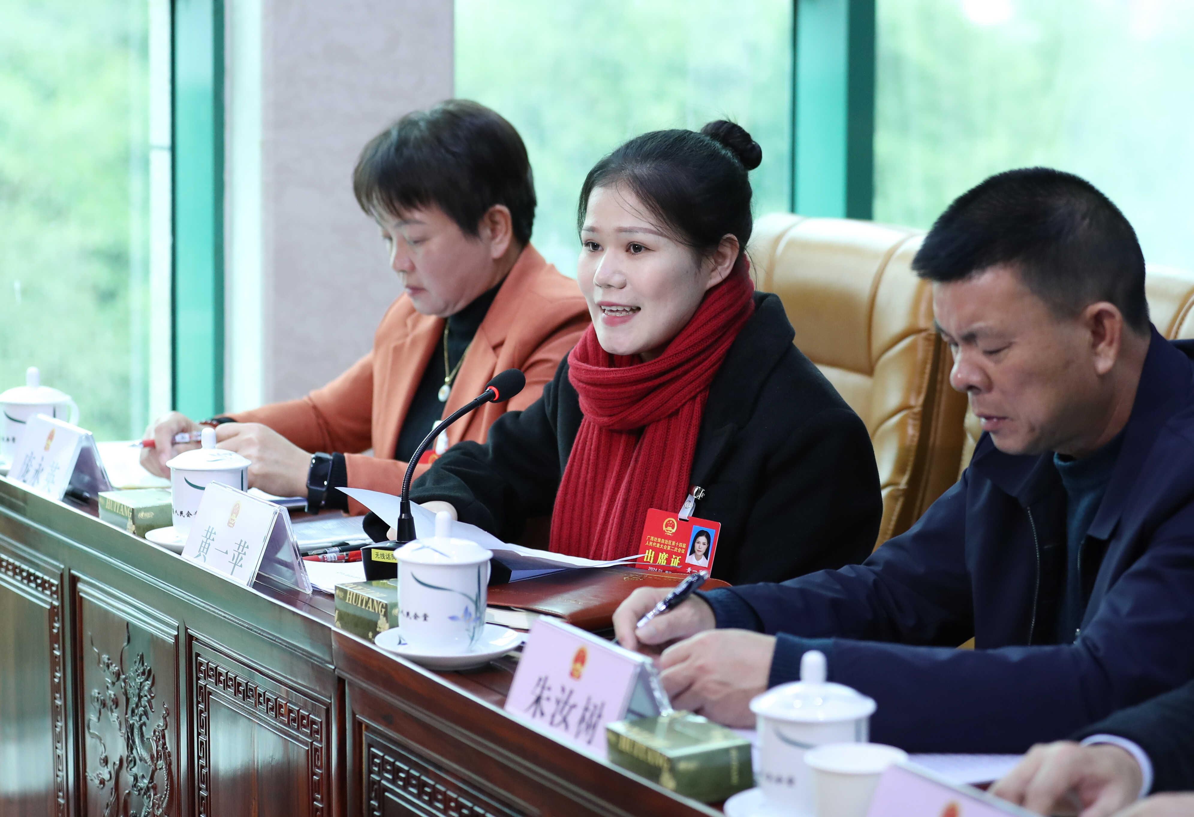 1月23日,在分组审议政府工作报告时,玉林市代表团的黄一苹代表就非物质文化遗产保护、传承和发展提出建议。广西日报-广西云客户端记者 唐典胜 通讯员 陈东 摄