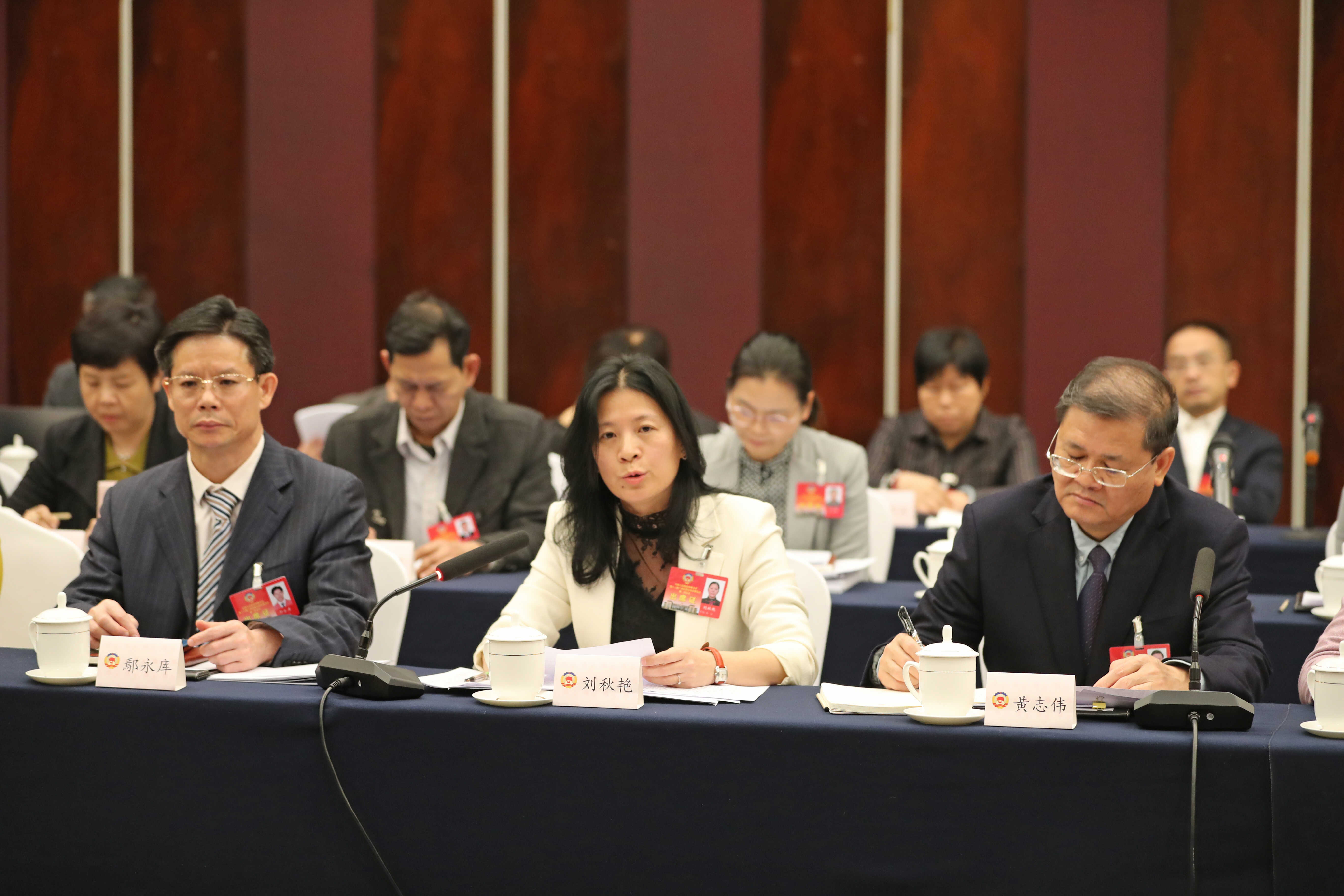 1月23日,在政协联组讨论中,刘秋艳委员就构建跨境产业链合作平台、打造跨境合作新高地发表意见。广西日报-广西云客户端记者 徐天保 何学俏 摄