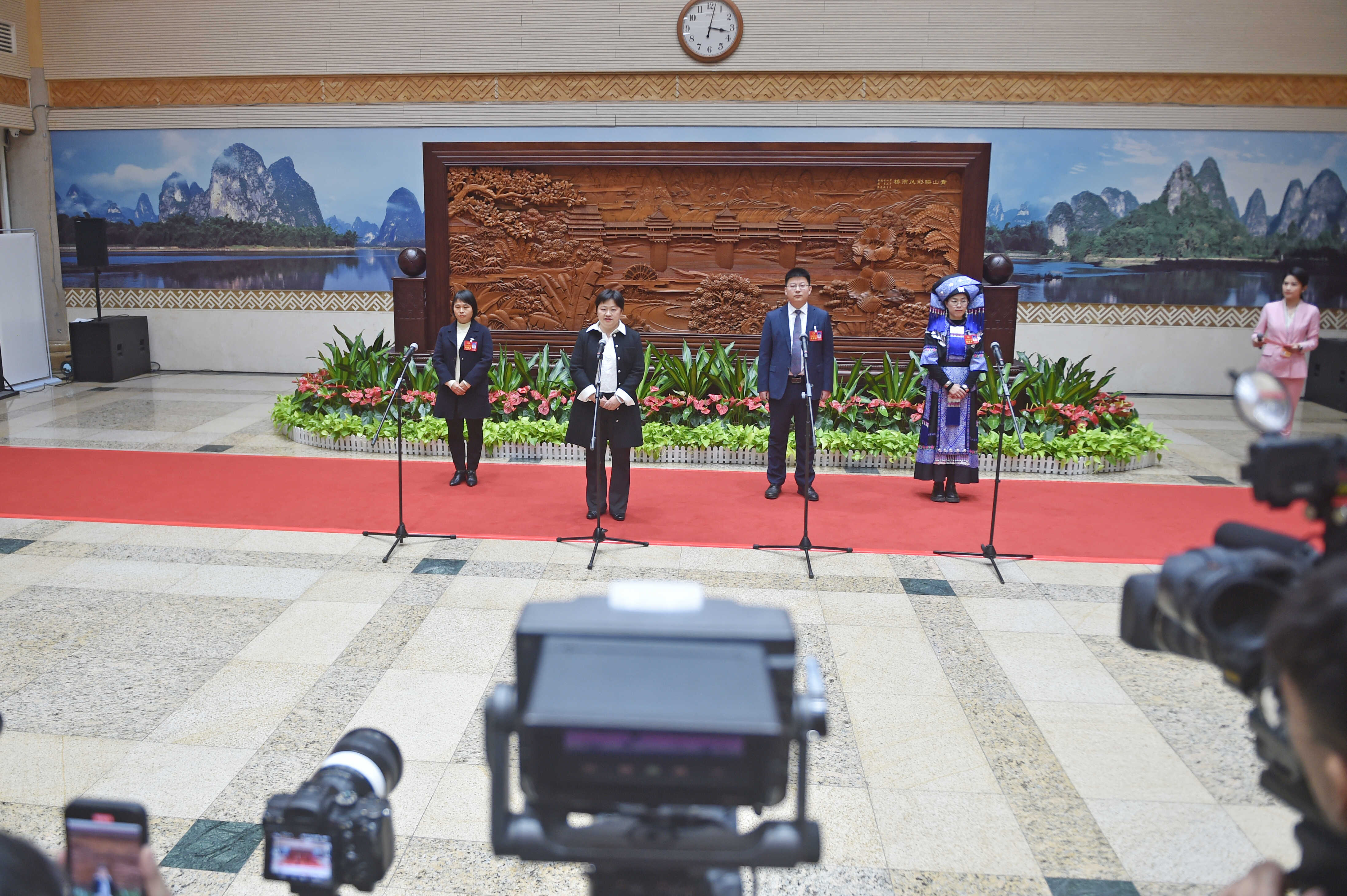 1月23日,自治区十四届人大二次会议举行第二场“代表通道”集体采访活动,梁枫、贾耀锋、韦丽娜、赖园园四位人大代表走上通道,讲述履职体会并与媒体记者进行互动。