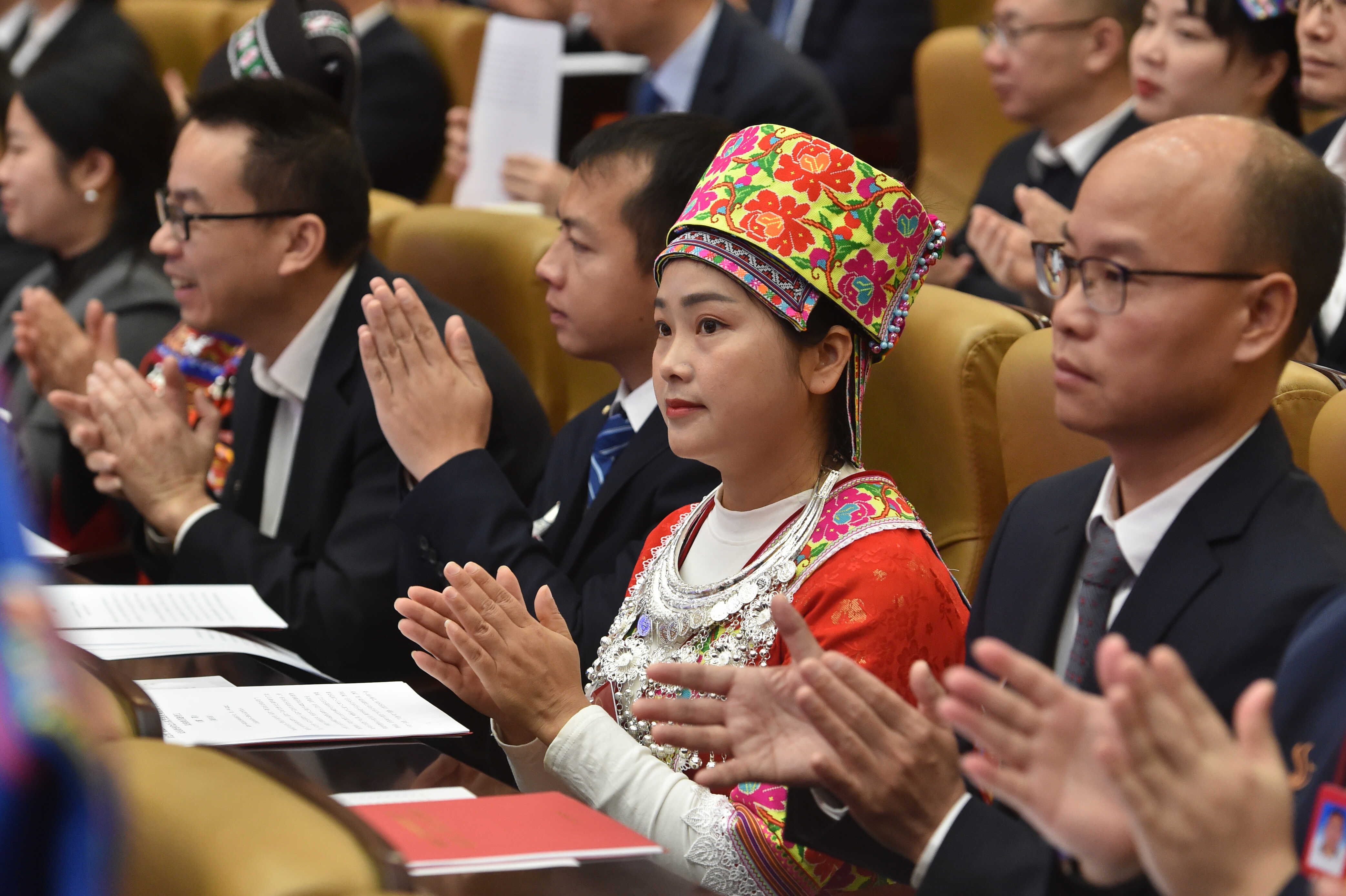 在闭幕会上,代表们鼓掌庆祝通过各项决议。