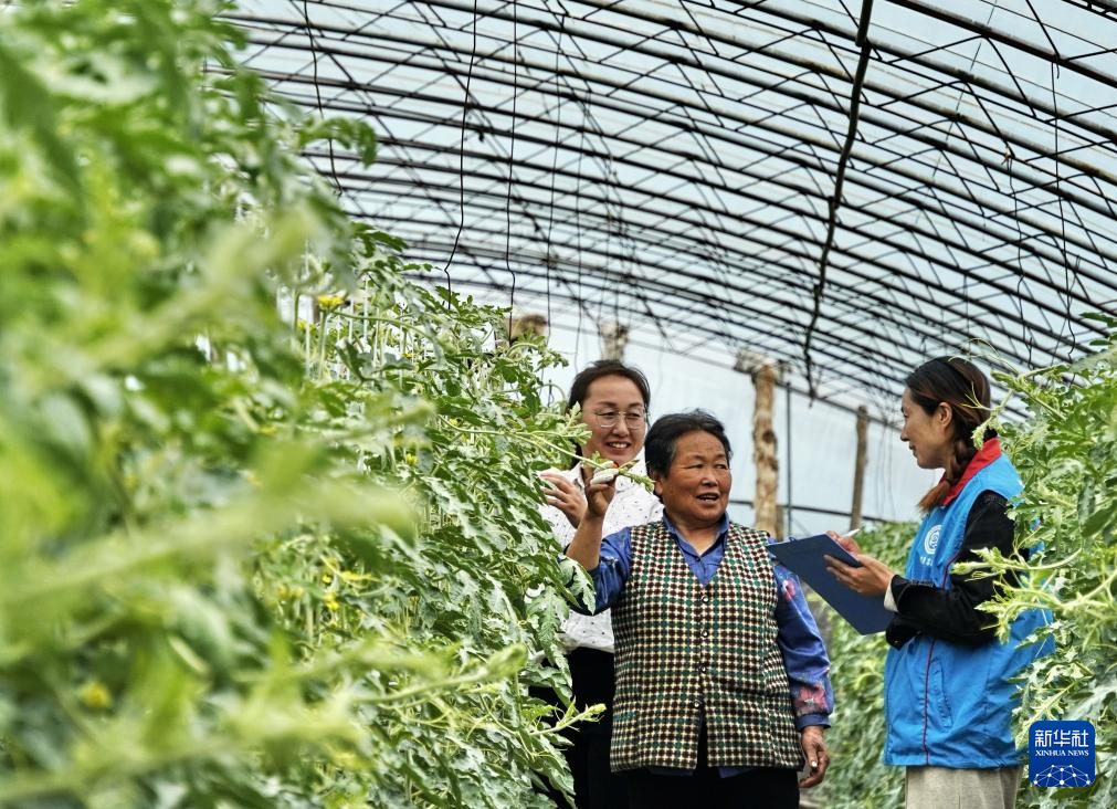 2024年4月9日,北京市大兴区庞各庄镇李家巷村政务服务站的工作人员来到大棚内为瓜农办理社保业务。“十四五”期间是社会保障领域改革力度最大的时期,社会保障体系日趋完善。(新华社记者 李欣 摄)