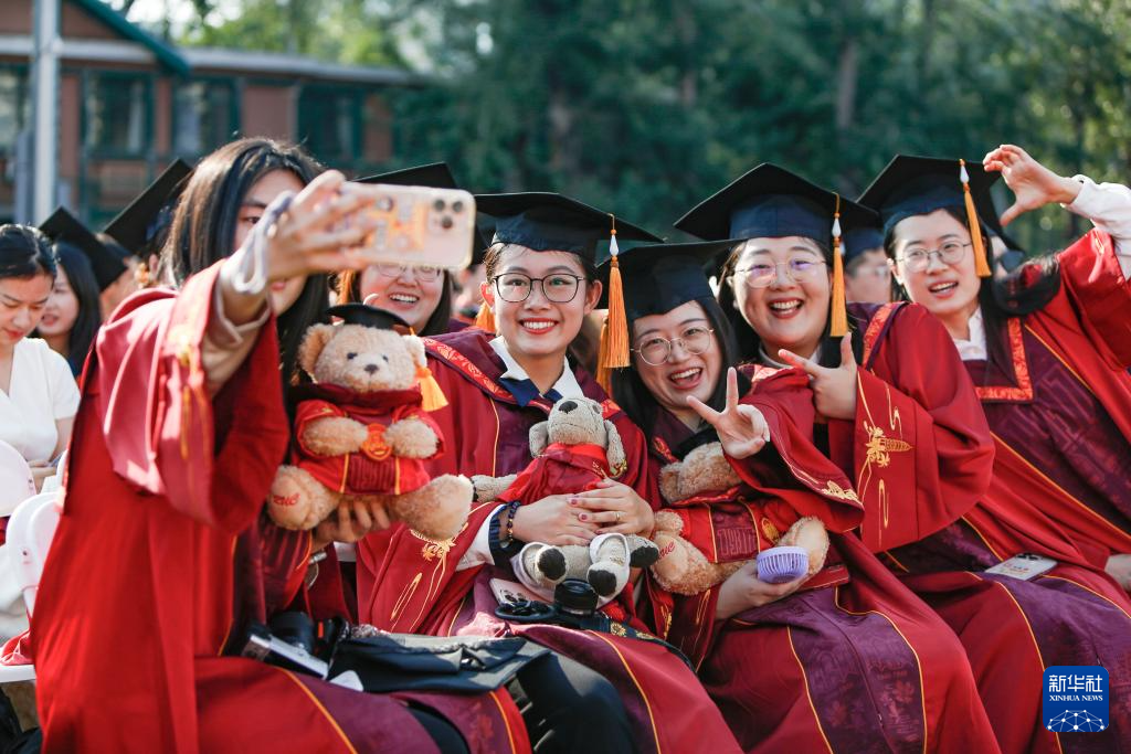 2025年6月23日,毕业生在中国人民大学毕业典礼上拍照留念。“十四五”时期,我国教育事业取得历史性成就,高等教育累计向社会输送5500万人才。(新华社记者 陈朔 摄)