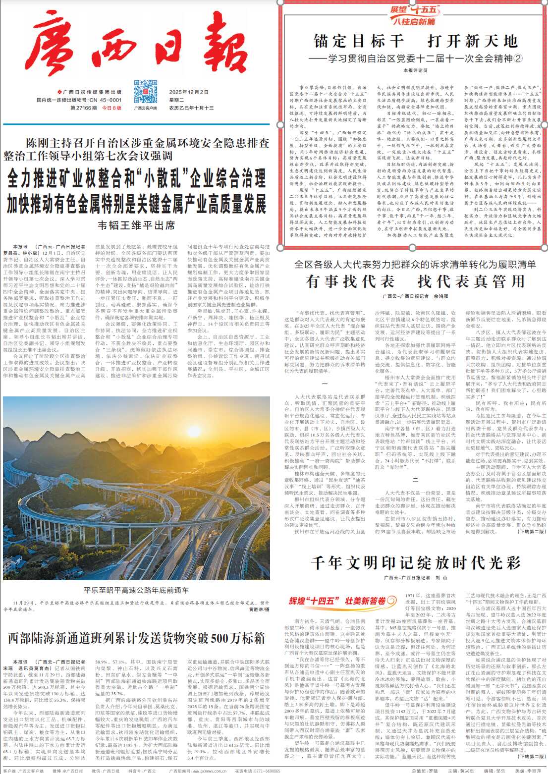 事业攀高峰,目标作引领。自治区党委十二届十一次全会为“十五五”时期广西经济社会发展擘画的主要目标,具有更加注重系统性布局、全面性推进、可持续发展的鲜明特质,为八桂大地打开发展新天地锚定了清晰的方向。