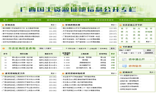 六是推动住房公积金信息公开。一方面15个公积金中心每年均按照要求如期公布财务报告和住房公积金年度报告,详尽公开机构概况、业务运行、财务数据、资产风险、社会经济效益等方面情况,主动接受社会监督,维护缴存单位和职工的知情权。另一方面建设开通12329短信平台,帮助职工更快地掌握住房公积金各类资讯。截至2016年12月底,已实现短信平台与自治区监管系统网络的连通,南宁、区直、河池、防城港、梧州、贵港、玉林、贺州、钦州等9个公积金中心已开通了短信服务,其他公积金中心正按计划稳步推进短信平台建设。七是继续推进征地信息公开。按照“批前-批复-批后”的征地流程,以真实群众访问需求为导向,统一设计全区“征地信息公开”专栏,详细规范征地公开过程内容,普及征地相关政策法规,实现阳光征地、透明征地。在全区各市、县征地信息网上公开的基础上,进一步整合全区各地征地数据资源,建成了“广西国土资源征地信息公开专栏”平台,实时公布全区各地最新建设用地批复文件,汇总并同步公开全区各市、县征地信息,实现自治区、市、县三级数据同步。