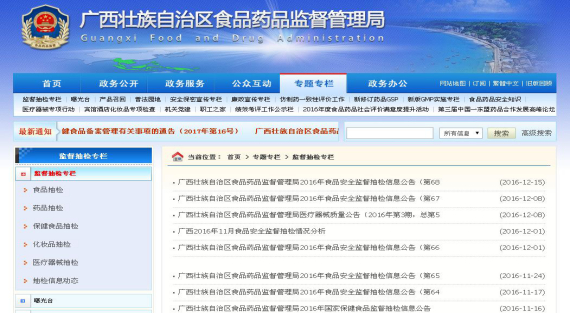——食品药品安全信息公开。一是及时发布抽检信息。通过监管部门网站“监督抽检信息”专栏,及时登载抽检信息,全年发布食品、药品、医疗器械、保健食品、化妆品及食品抽检信息情况分析70期,基本实现每周常态化滚动公布。同时在每期抽检信息都附有“小贴士”,跟进风险解读,及时让公众了解全区“四品一械”产品质量状况,引导公众科学安全理性消费。二是持续推进行政处罚案件信息公开。通过召开新闻发布会,以及网站、报刊宣传等公开形式进一步扩大案件信息公开的影响力。全区系统公开一般程序案件信息2814件。对重大食品药品案件涉案企业吊销生产经营许可证的处罚全面予以公开。三是加大食品药品严重违法行为信息公开。对社会高度关注的重大案件,采取“边办案、边公开”的方式向社会发布信息,回应社会关切。通过网站“曝光台”专栏,发布13期通告,曝光一大批违法药品、医疗器械、保健食品广告及食品药品严重违法生产经营者相关信息。四是及时发布消费警示信息。通过网站“消费警示”专栏,根据季节性食品中毒事件发生特点,及时发布相关信息。先后发布了预防四季豆中毒、毒蘑菇、夏季食品安全消费、清明节及壮族三月三食品安全、雨雪冰冻灾害道路滞留食品安全警示等5期。