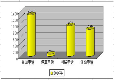 申请方式中,当面申请1288件,占41%;传真申请73件,占2%;网络申请953件,占30%;信函申请837件,占27%。当面申请依然占的较大比例,但同比减少28%。随着互联网的广泛应用,通过网络提出的申请快速增加,同比增长19%,一方面说明了群众利用、使用网络的程度在不断加深,另一方面也说明了群众选择申请提交渠道更偏向于快捷、方便的方式。