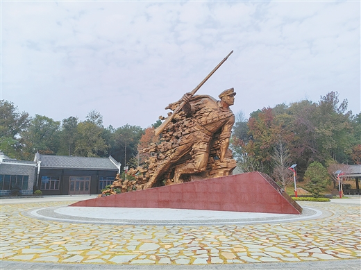 兴安县界首渡江遗址公园主题雕塑《一往无前》,生动展示了红军将士抢渡湘江的英姿。徐天保 摄